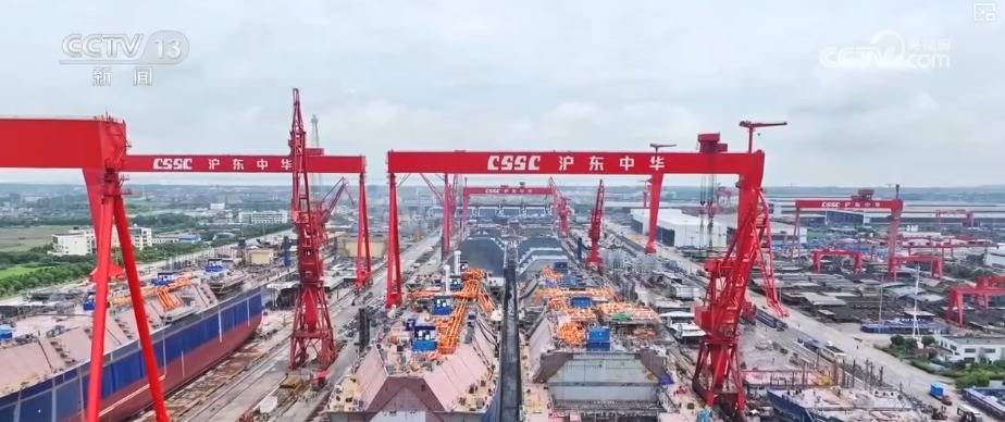 r截止到2025年6月底,“十四五”期间,中国造船业共计承接了64.2%的全球新船订单,比“十三五”期间高出15.1个百分点,造船大国地位进一步巩固,市场份额连续16年位居世界第一。